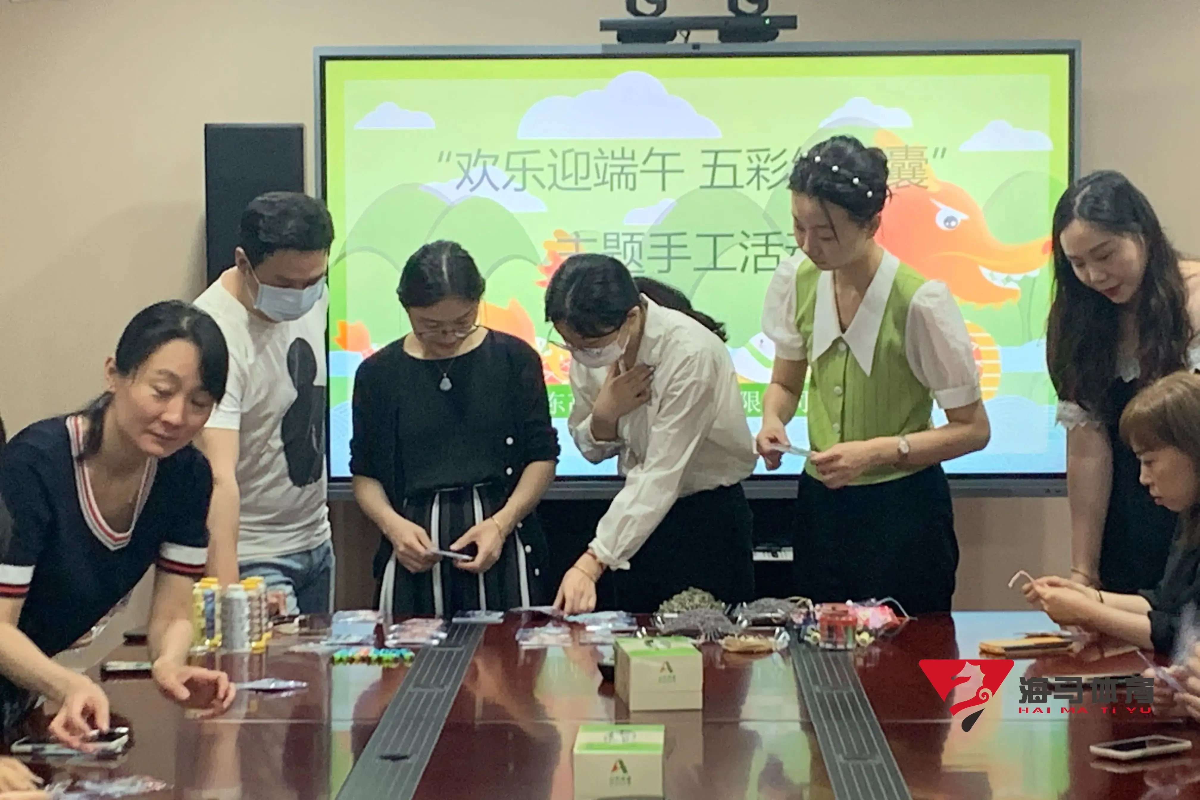 制作前,极悦娱乐的手工老师首先介绍了端午的习俗以及端午节制作香囊与五彩绳的来历,让大家在活动前了解端午的民俗文化,手工老师将精心准备的有着美好寓意的五色彩绳、色彩绚丽的香包袋以及清香的艾草薰衣草,送到职员手中,携手制作香包和五彩绳。